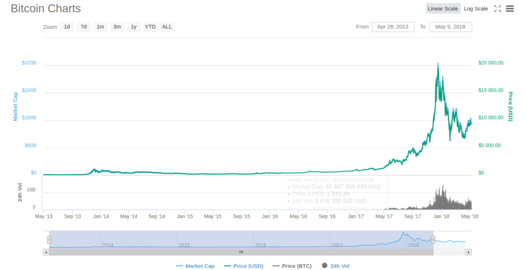 Let us take a closer look at Bitcoin’s highs and lows. The price of the token has changed from $76 (07.09.13) to $20,000 in December 2017. After reaching its highest point in December, the price dropped to $6000 in February 2018.