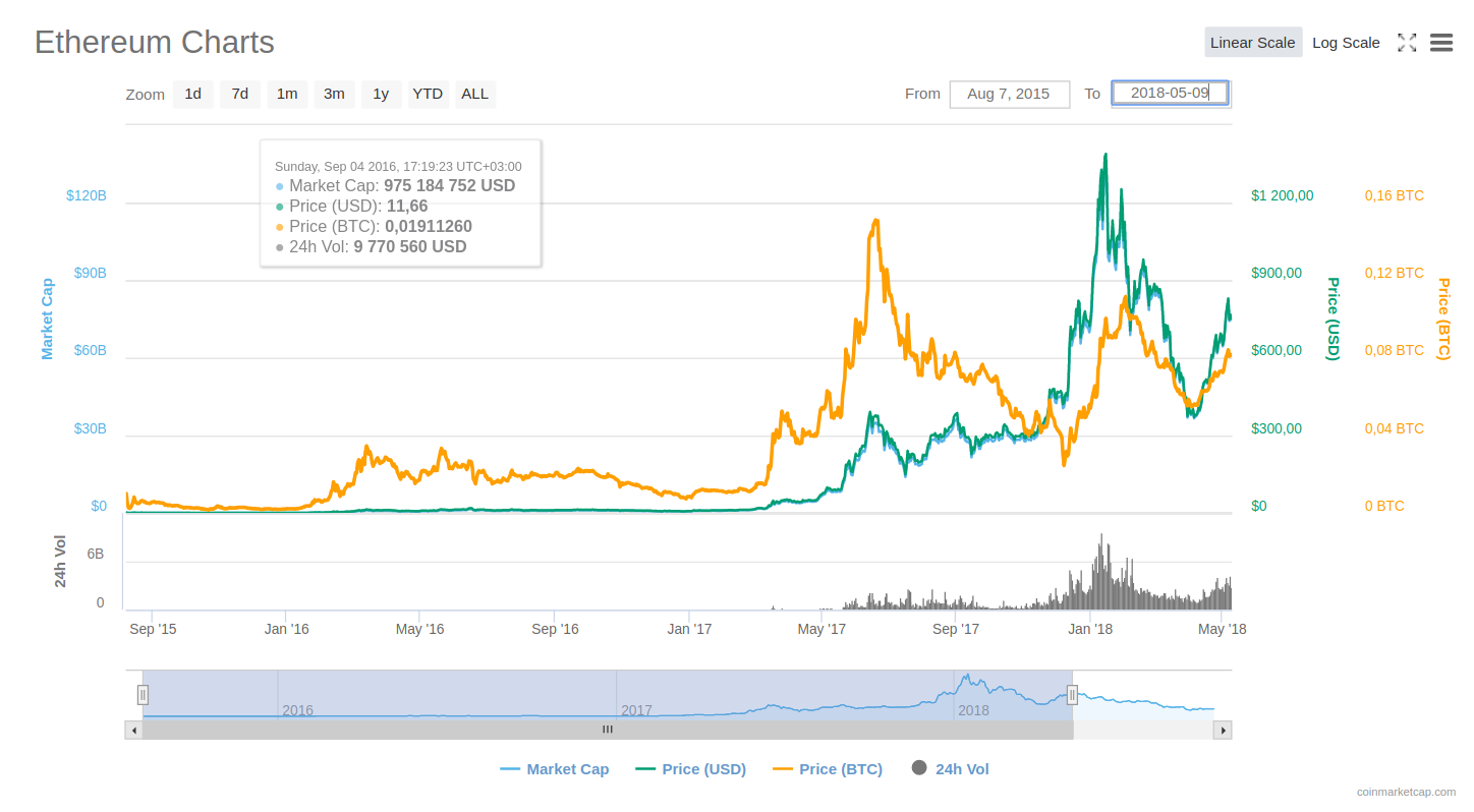 If we look back over the past year, we might find that the price of Ethereum was no more than $720, while a total market cap was about $70B. In early 2018, Ethereum was estimated at $1423 with a total market cap of $138B.